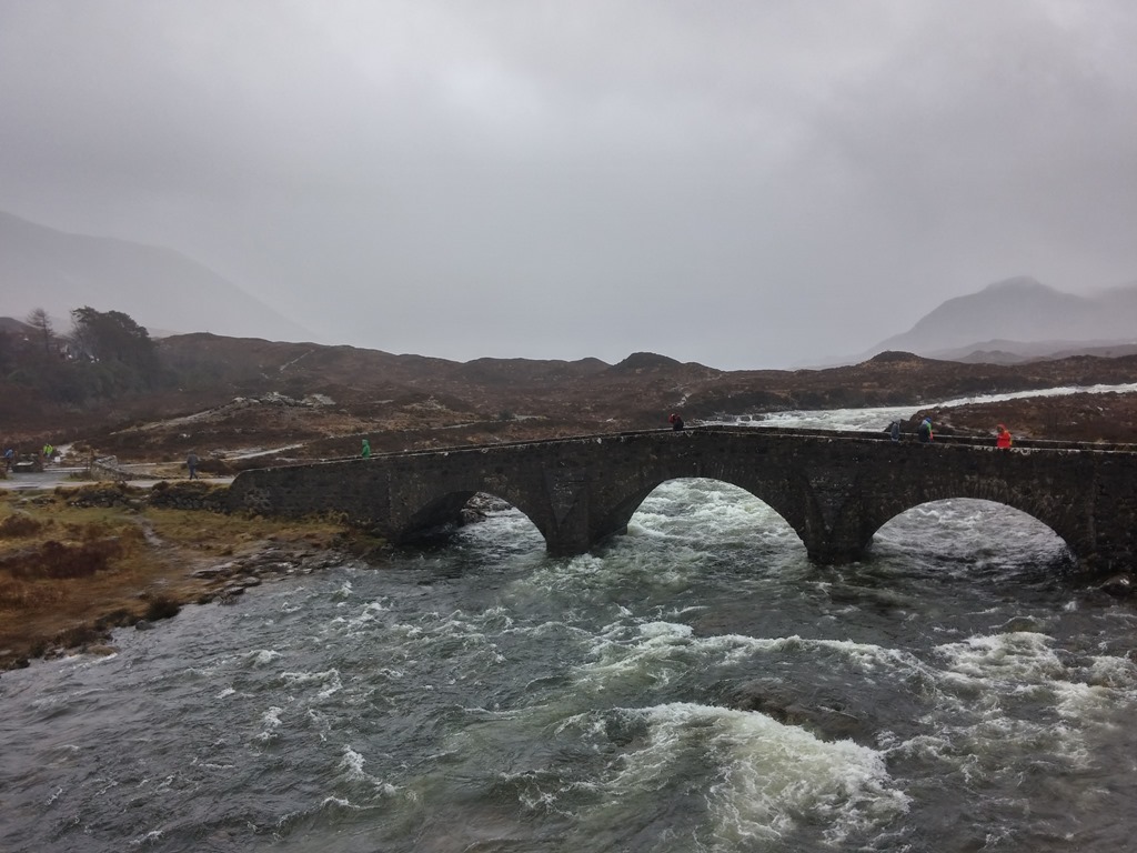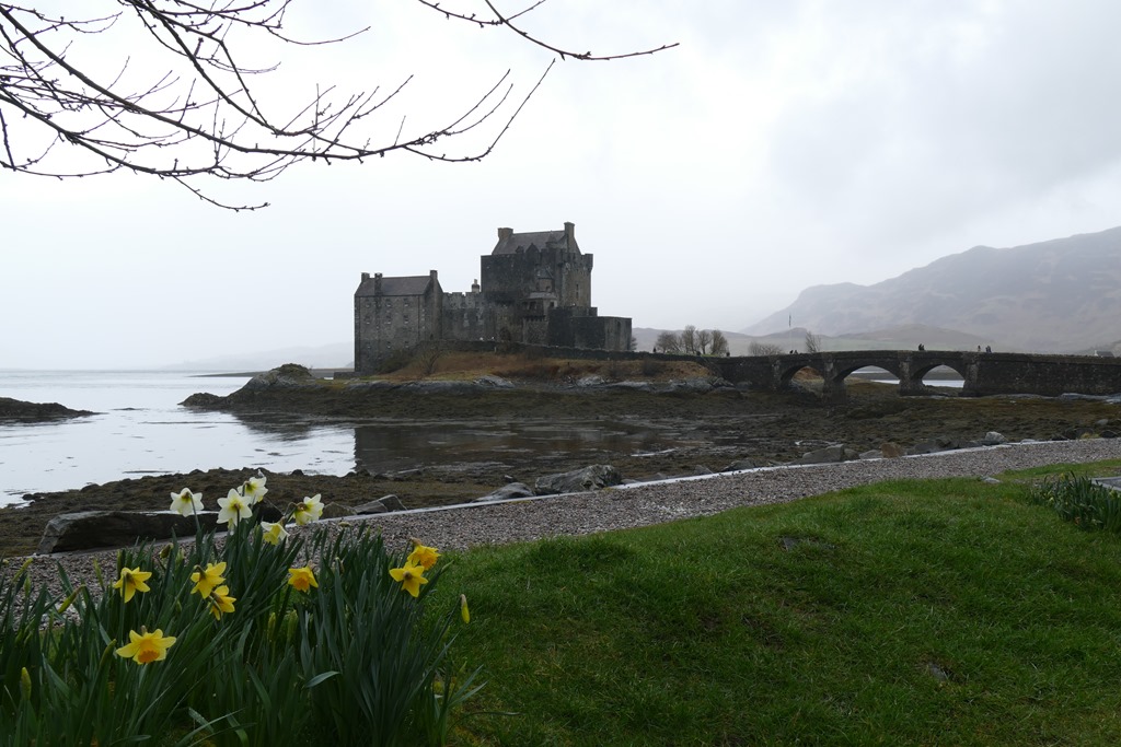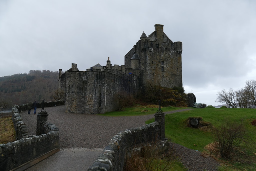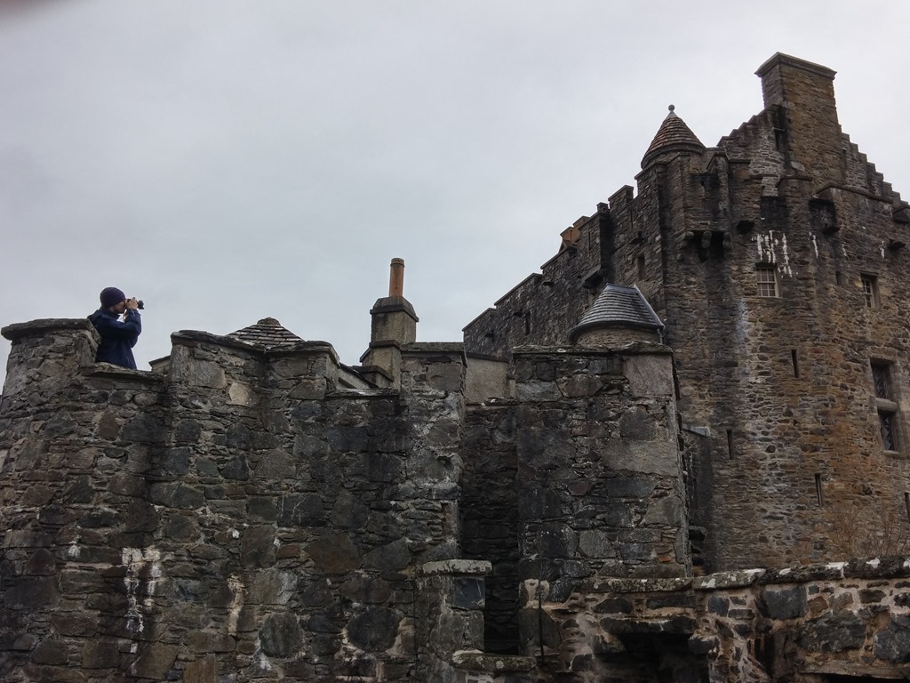 Beim Eilean Donan Castle angekommen war der Regen wieder aus und wir konnten es voll und ganz erkunden. Drinnen wurden alte Schotten aus dem 17-18.Jhd. an die Wand gebeamt und erzählten aus ihrer Sicht die Geschichte. Recht witzig und gut gemacht. Ein Engländer erzählte davon, dass sie die Burg nun eingenommen haben und weil sie nicht wollen, dass die Clan- Chefs eines Tages wieder hier einziehen können, haben sie es mit den Pulverfässern der Highlander in die Luft gesprengt. Später wurde die Burg von einem reichen Schotten wieder aufgebaut.