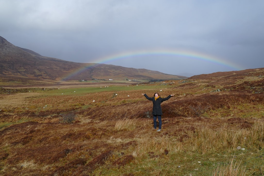 Als wir weiterfuhren begann es wieder zu regnen. Da auch die Sonne schien, tauchten immer wieder extrem leuchtende Regenbogen auf.
